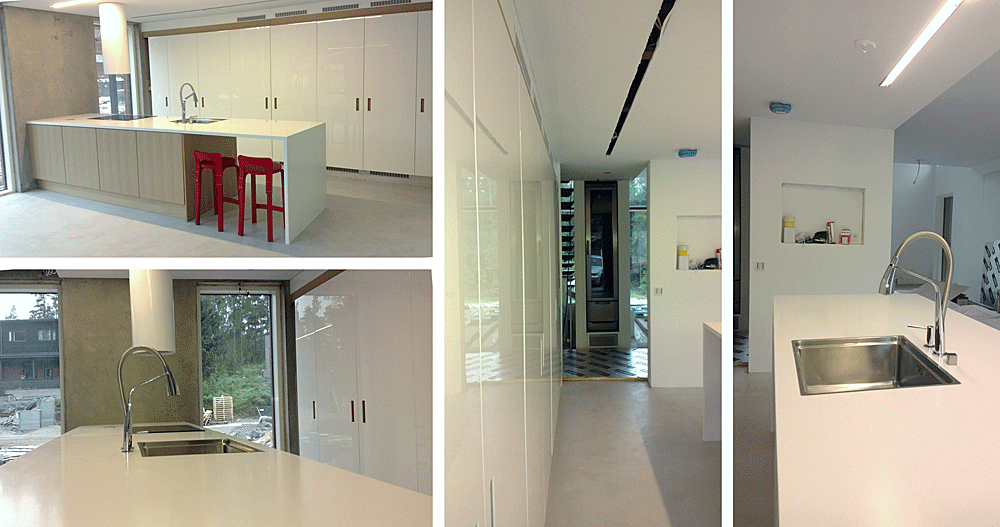 Nyt kun Corian-taso on paikoillaan, konkretisoitui myös se, että saareke on julmetun iso. Enää ei arveluta, mahtuuko tasolla tekemään ruokaa ja onko meillä tosiaan säilytystilaa kaikille kihveleille ja kahveleille.